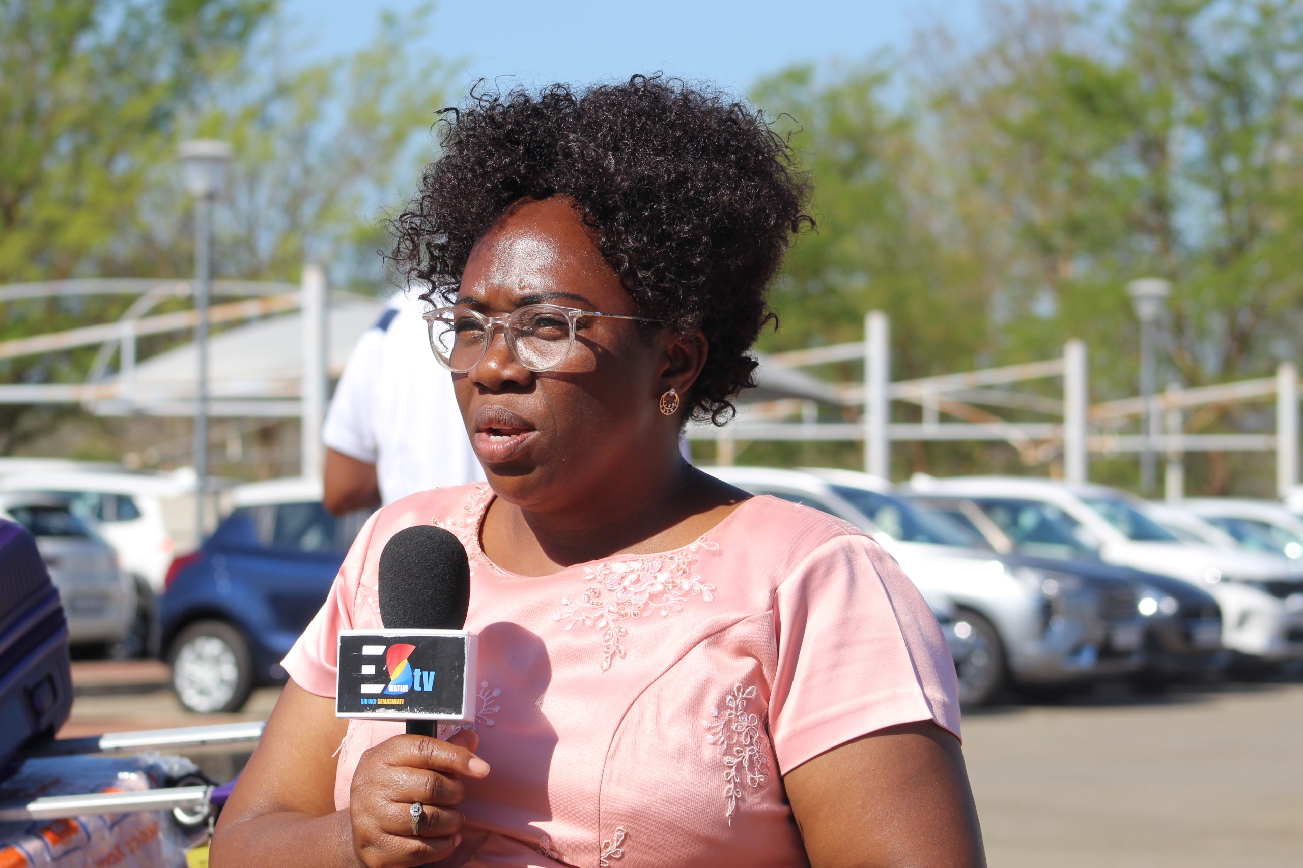 Mrs. Tryphinah Mvubu having a moment with Eswatini TV's staff.